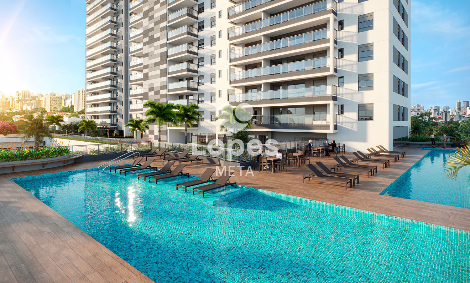 Piscina adulto e infantil, academia equipada, salão de festas, espaço gourmet, brinquedoteca, playground e portaria 24h com controle de acesso.