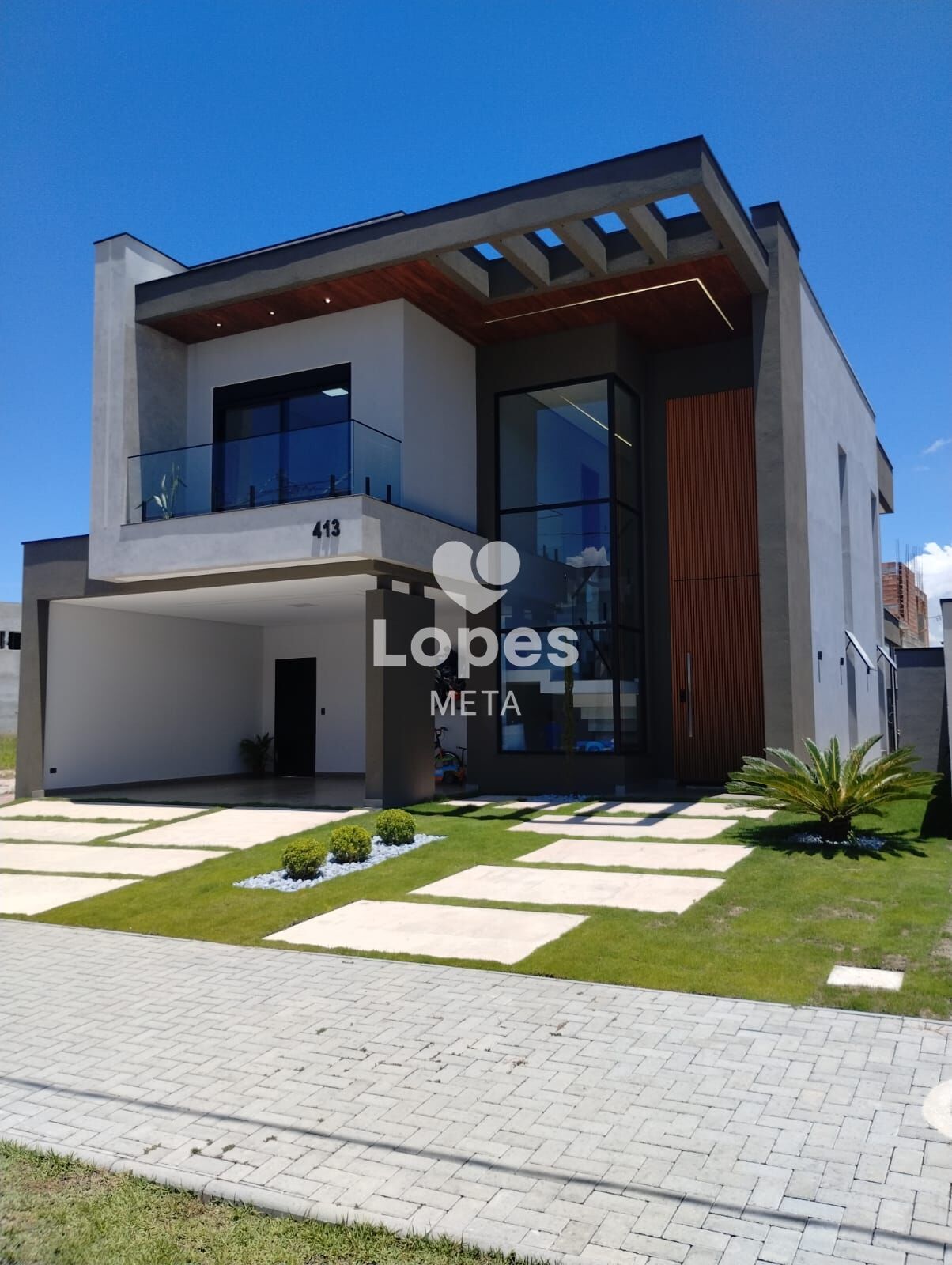 Belíssima casa recém-construída no Condomínio Terras Alpha, em São José dos Campos, com projeto moderno, excelente distribuição dos ambientes e alto padrão de acabamento.
