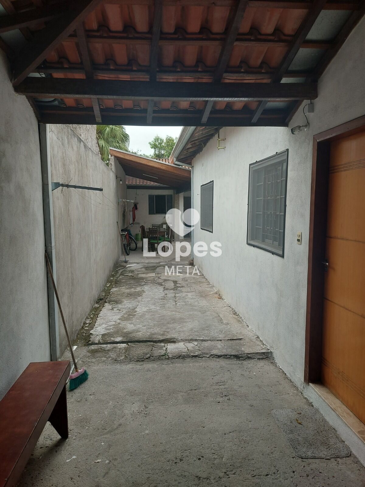 Área externa com lavanderia e banheiro, área coberta para churrasqueira.